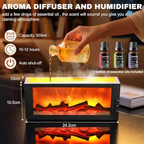 Colorful Flame Fireplace Diffusers for Essential Oils Aroma Flame Diffuser Fireplace Humidifier with Remote 150ml Ultrasonic Air Humidifier with Timer for Home Bedroom Room Office