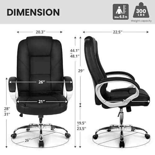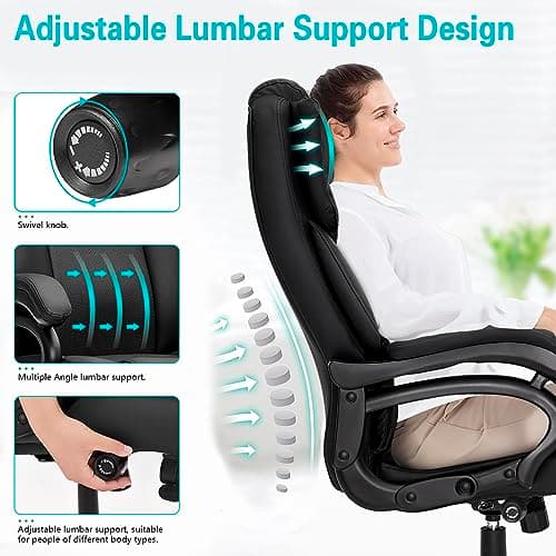 Furmax Office Executive Chair High Back Adjustable Managerial Home Desk Chair, Swivel Computer PU Leather Chair with Lumbar Support (Black)