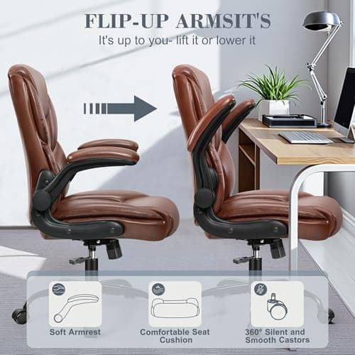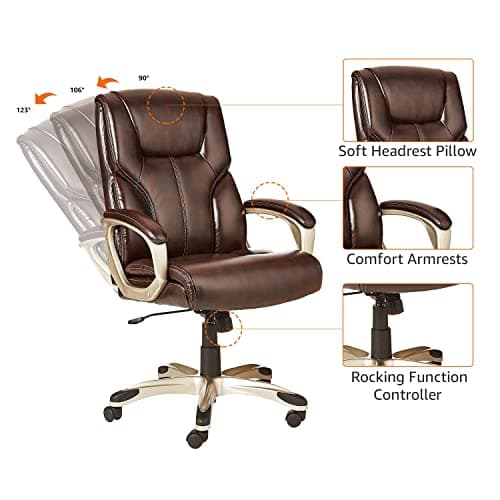 Amazon Basics Executive High Back Office Chair, Adjustable Height, Tilt, Swivel, Padded Armrests, Brown/Gold