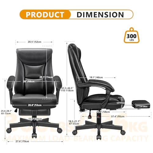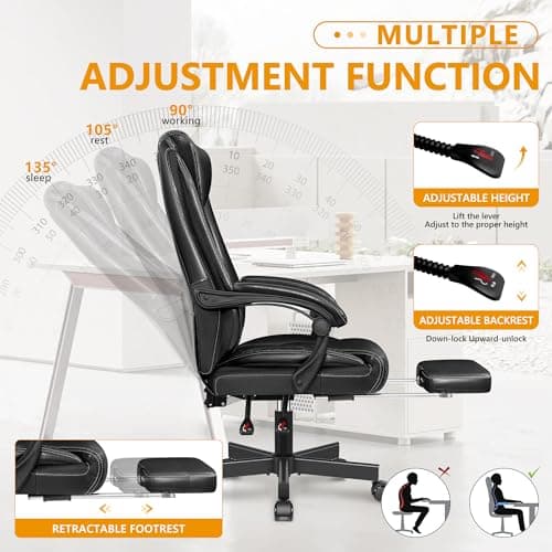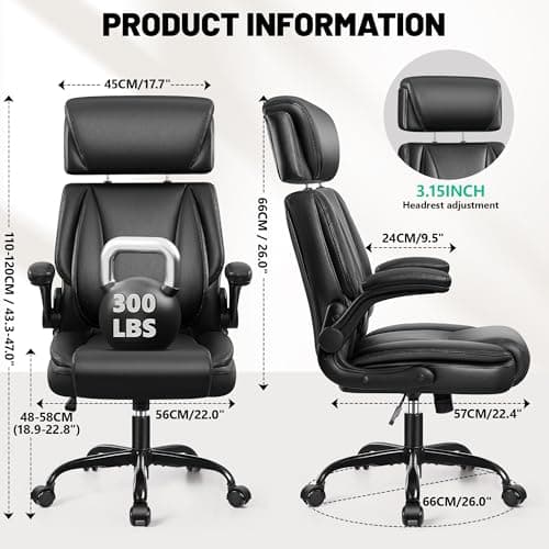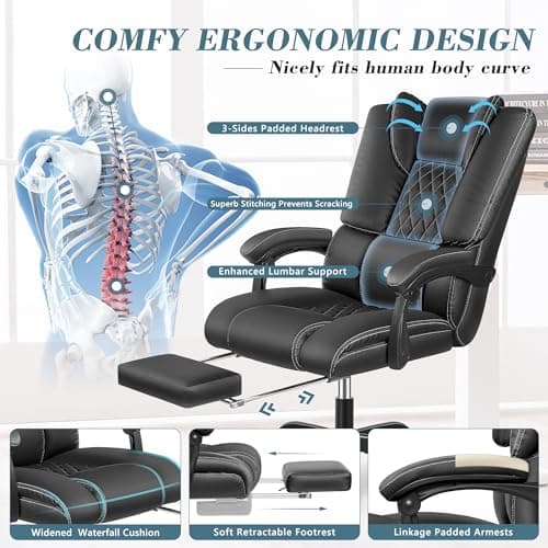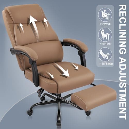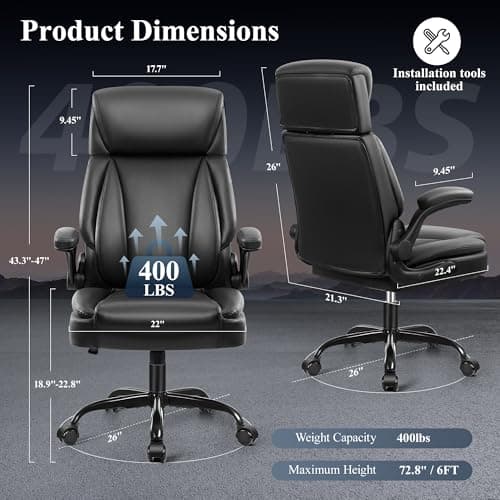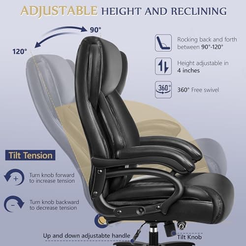 OFIKA Home Office Chair, 400LBS Big and Tall Computer Chair Heavy Duty Design, Ergonomic High Back Cushion Lumbar Back Support, Adjustable Executive Leather with Armrest