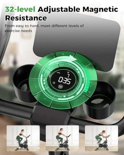 SupeRun Magnetic Exercise Bike for Home Cardio, Stationary Indoor Cycling Bike with 32-Level Resistance & Adjustable Seat/Handlebar, Silent Belt Drive Workout Bike for 5'1" to 5'11" Users