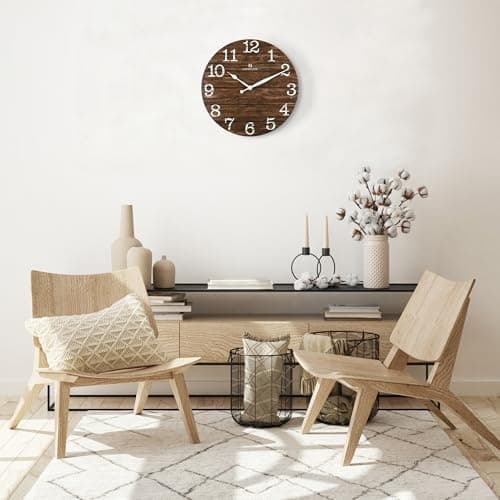 NIKKY HOME Farmhouse Black Wall Clock - 12 Inch Quartz Battery Operated Vintage Wooden Decorative Silent Analog Clock for Kitchen, Living Room, Bedroom, Office