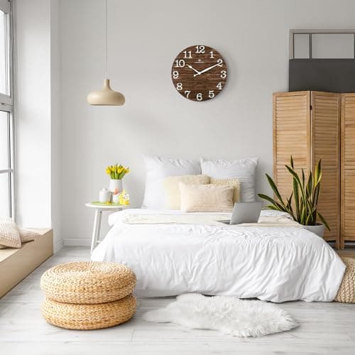 LEIKE Large Wall Clocks,Silent,Non Ticking,Battery Operated Small Vintage Round Modern Wood Wall Clock for Living Room, Bedroom,Kitchen,Farmhouse,Office Decor-13.5 Inch(Black-Arabic Number)