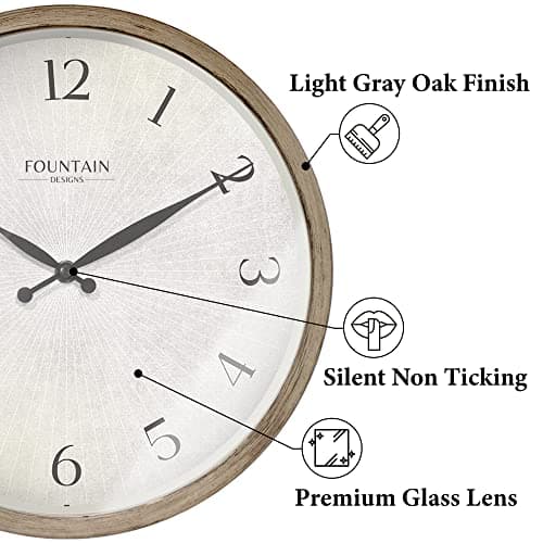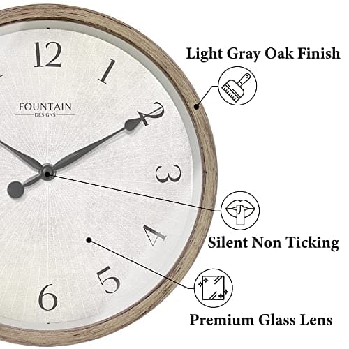 HYLANDA Wall Clock, 10 Inch Rustic Wall Clocks Battery Operated Silent Non Ticking, Country Round Wooden Clocks Farmhous Wall Decor for Bathroom, Living Room, Kitchen, Bedrooms, Dining Room (Gray)