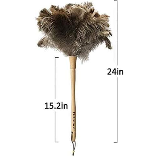 Feather Dusters for Cleaning, Feather Duster Ddzmz Fluffy Natural Genuine Ostrich Feathers and Reusable Wooden Long Handle Large Ostrich Feather Duster Cleaning for Housewife Brown Length 24" 1Pack