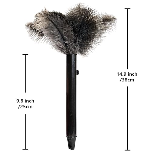 iHUFeather Retractable Ostrich Feather Duster for Cleaning, Fluffy and Natural Feather Duster with Retractable Handle, Reusable Eco-Friendly Handheld Cleaning Supplies (15 inch)