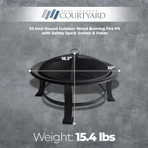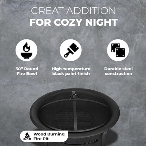 Fire Pit - 32-Inch Outdoor Wood Burning Firepit with Screen, Poker, and Cover - Outdoor Fire Pits for Backyard, Deck, or Patio by Pure Garden (Black)