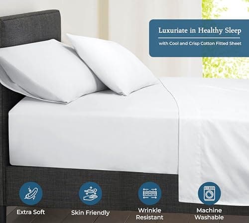Linen Home 100% Cotton Percale Weave Fitted Sheet, Twin Size, White, 1 Deep Pocket Fitted Sheet, Fits Mattress Upto 16" Crisp and Cool Strong Bed Linen, 39"X75"+15"