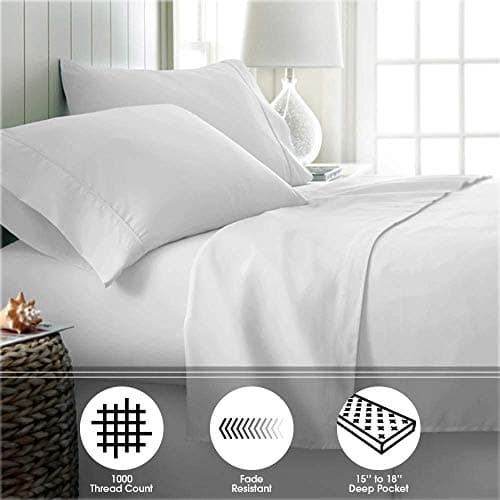 Charlottely Hues 1000 Thread Count Fitted Sheet - 100% Egyptian Cotton Long-Staple Breathable Sateen Weave All Around Elastic - Mattress Fits Upto 18" Deep Pocket Fitted Sheet (White, King)