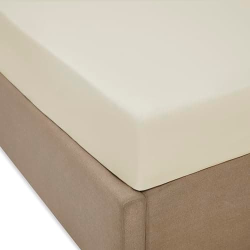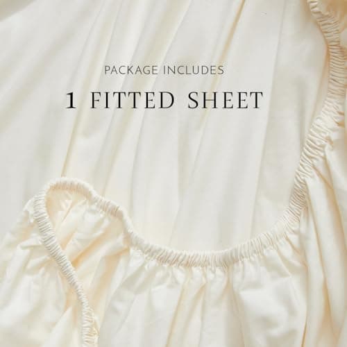 100% Cotton Ivory Twin Fitted Sheet - Percale Weave, Back to School College Essential, Cool & Crisp Deep Pocket, Breathable & Comfortable