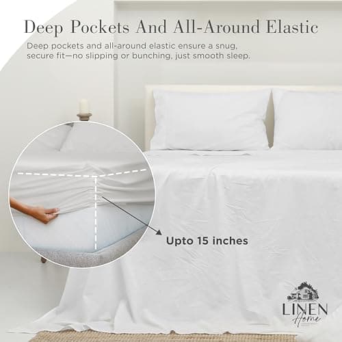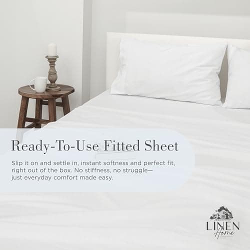 Linen Home Washed Cotton Percale Fitted Sheet Twin Size, White, 1 Deep Pocket Fitted Sheet, Soft and Cool Strong Bed Linen, 39"X76"+14"