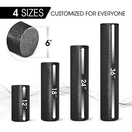 Yes4All High Density Foam Roller for Back, Variety of Sizes & Colors for Yoga, Pilates - Black - 12 Inches