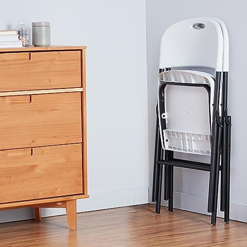 Amazon Basics Portable Folding Plastic Chair with Back Support, Easy to Fold and Store, 350-Pound Capacity, White, 2-Pack