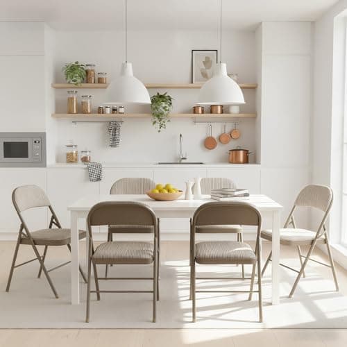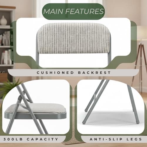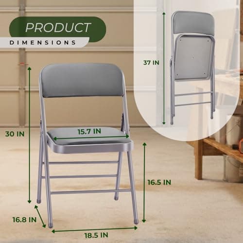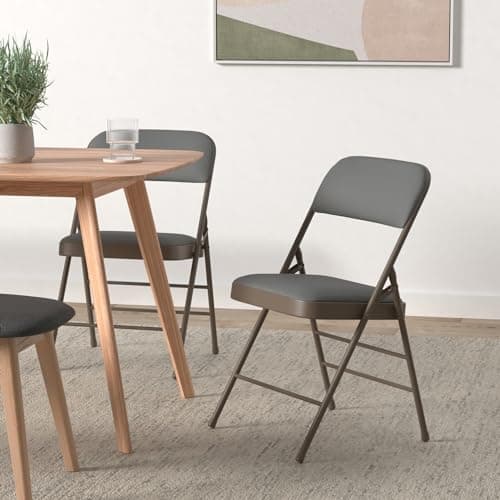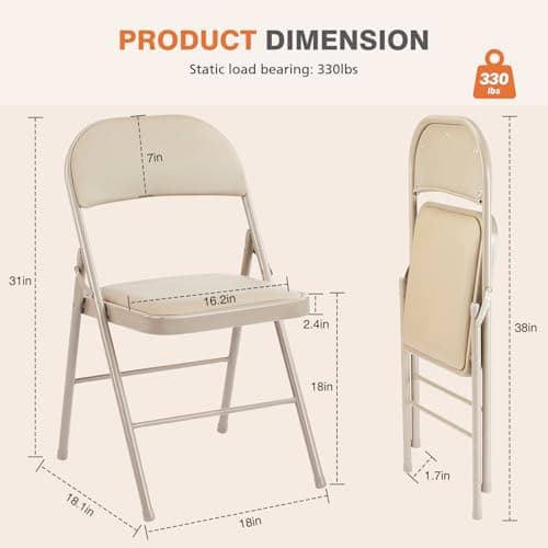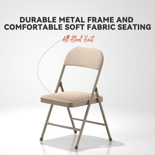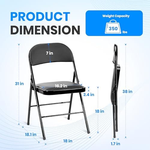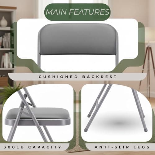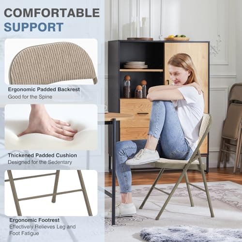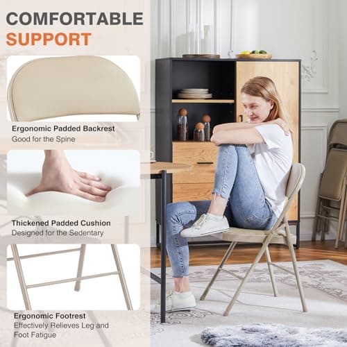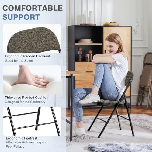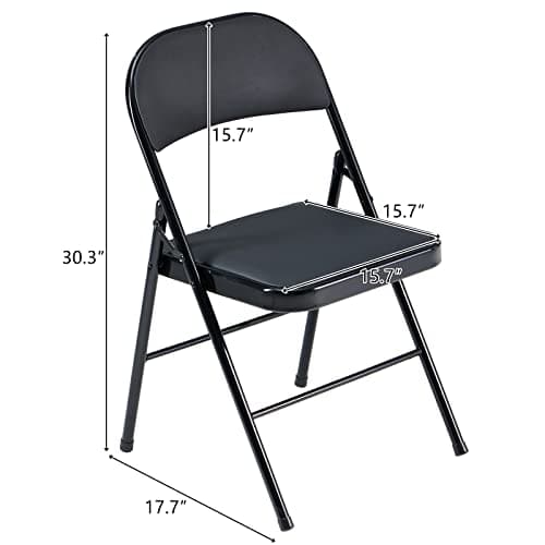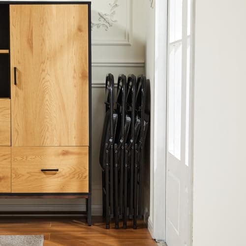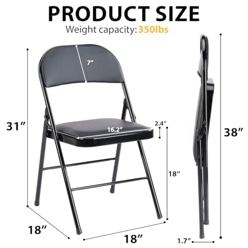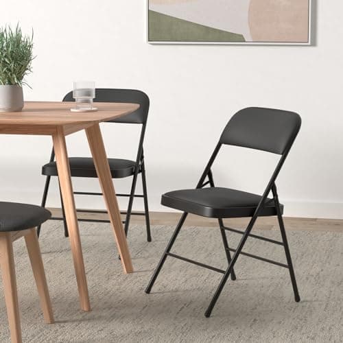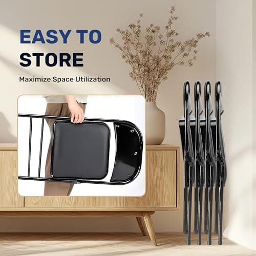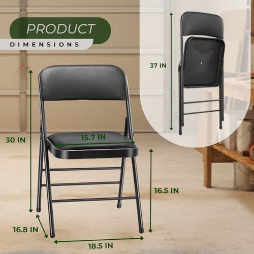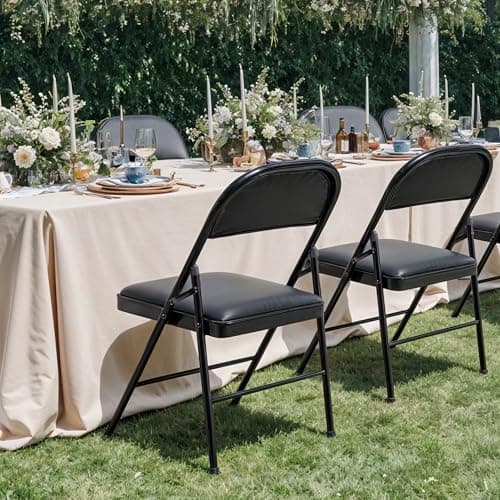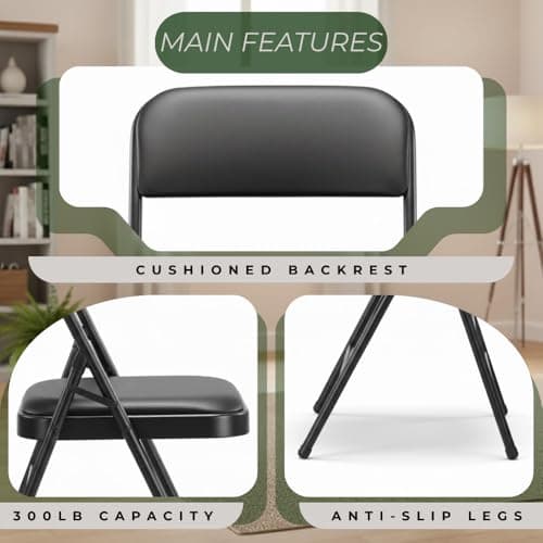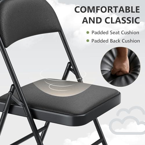 Nazhura 4 Pack Folding Chairs with Padded Cushion and Back, Khaki Metal Chairs with Comfortable Cushion and Durable Steel Frame for Home and Office, for Indoor and Outdoor Events (Black, 4 Pack)
