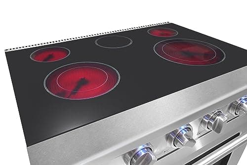 KOSTCH 30 inch Professional Electric Range with 5 Heating Elements Cooktop, 4.55 Cu. Ft. Convection Oven Capacity, Smooth Glass Top, in Stainless Steel, KOS-30RE06H (White)