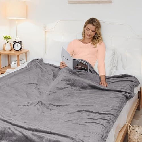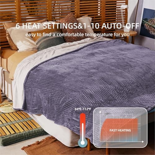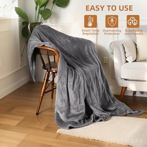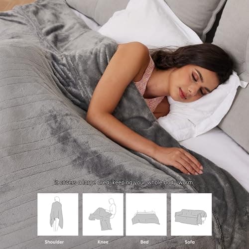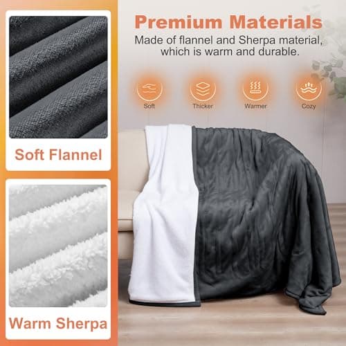 Bedsure Heated Blanket Throw Blanket - Fast Heating Electric Blanket, Soft Flannel Heated Throw with 4 Time Settings, 6 Heating Settings, Warm Gifts for Grandma & Grandpa & Seniors (50"x60", Grey)