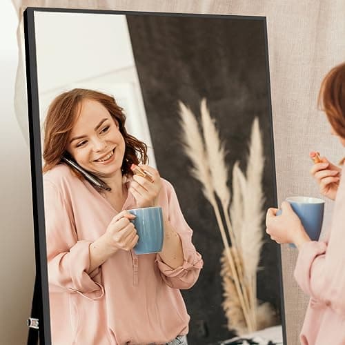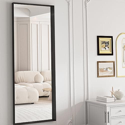 Delma Wall Full Length Mirror,Standing Mirror Full Body,Large Floor for Wall Door Bedroom Bathroom Living Room with Aluminium Frame(with Stand,56x15-Black)