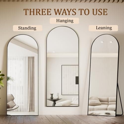 ITSRG Floor Mirror, Full Length Mirror with Stand, Arched Wall Mirror Full Length, Black Floor Mirror Freestanding, Wall Mounted for Bedroom, Black