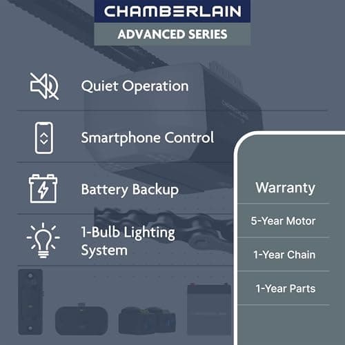 Chamberlain 1/2 HP Chain Drive Smart Garage Door Opener with Battery Backup, 1-Bulb Lighting, and myQ Connectivity
