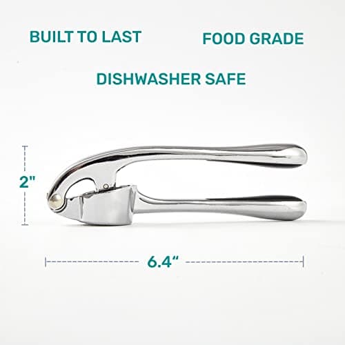 Kitessensu High Effective Garlic Press With Studs, Heavy Duty Garlic Mincer, Easy to Squeeze and Clean, Rust Proof & Dishwasher Safe, Ginger Crusher- Imperial Silver