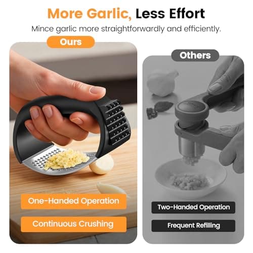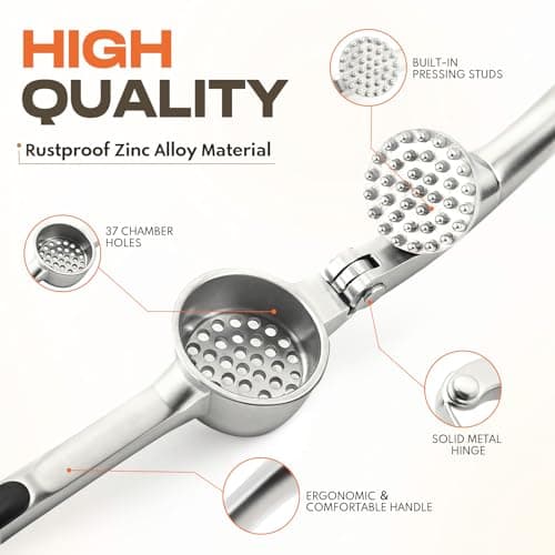 The second divide is ownership friction. Some shoppers care most about easy cleanup or dishwasher-safe use, while others prioritize high leverage, limited grip strength, or the bigger loading area on a large / jumbo chamber press. Material and extras matter too, especially when the shortlist narrows to stainless steel, zinc alloy, or bundles with a peeler included.