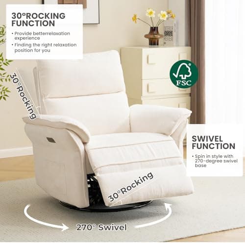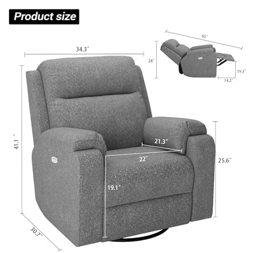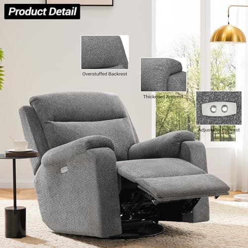 CHITA Power Recliner Chair Swivel Glider, FSC Certified Fabric Living Room Nursery Reclining Sofa Chair with Lumbar Support, Dove Grey