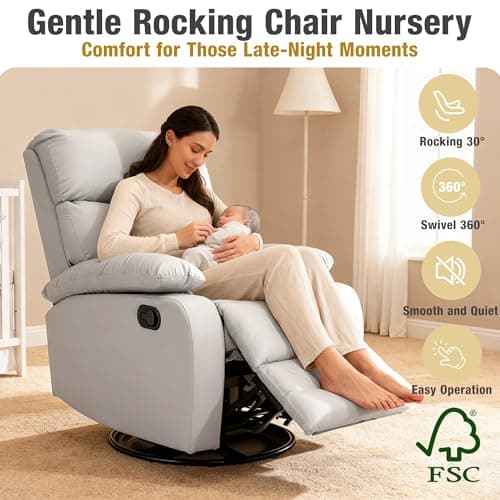 Sweetcrispy Recliner Chair, 360 Swivel Rocker Chair for Adults, Glider Rocker Recliners, Nursery Chairs for Living Room, High Back, Upholstered Deep Seat, Grey