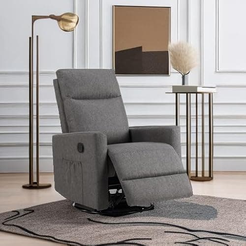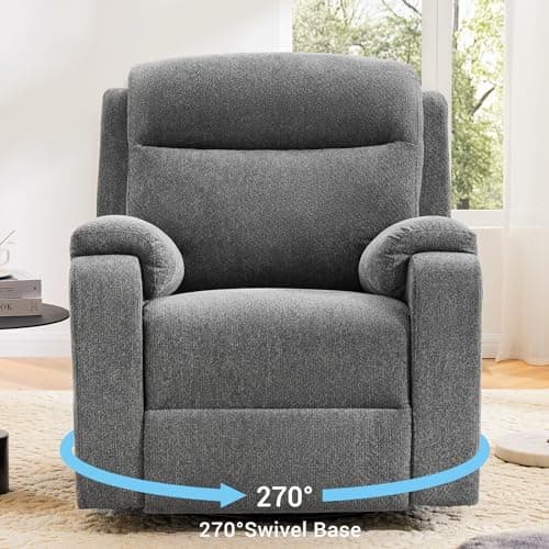 Korser Recliner Chair, 360 Swivel Rocker Chair for Adults, Small Rocking Recliner for Small Spaces, Upholstered Fabric Glider Recliner Nursery (Swivel Rocker Recliner, Grey)