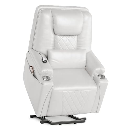 CANMOV Large Power Lift Recliner Chairs with Massage and Heat for Elderly Big People, Heavy Duty Electric Faux Leather Reclining Chairs with USB Port and 2 Side Pockets, Grey