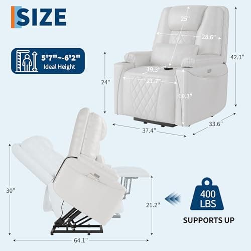 Best Choice Products PU Leather Electric Power Lift Chair, Recliner Massage Chair, Adjustable Furniture for Back, Legs w/ 3 Positions, USB Port, Heat, Cupholders, Easy-to-Reach Side Button - Beige