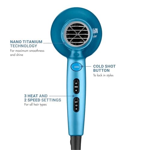 BaBylissPRO Nano Titanium Travel Dryer, Blue