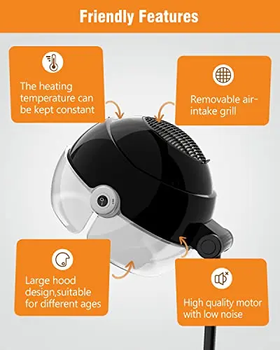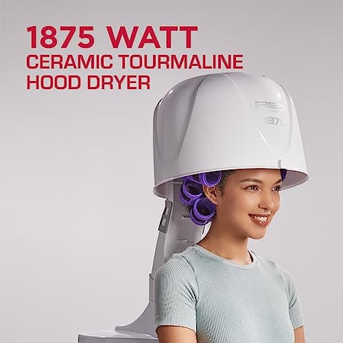 TASALON Ionic Hooded Hair Dryer - 1875W Bonnet Dryer with 3 Temperature Settings - Portable Standing Dryer for Home and Salon