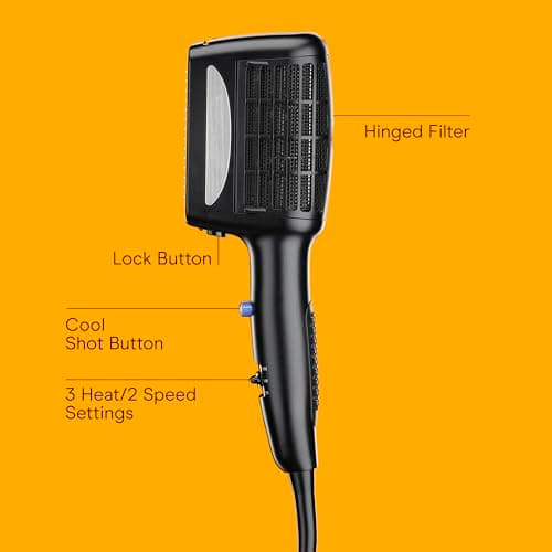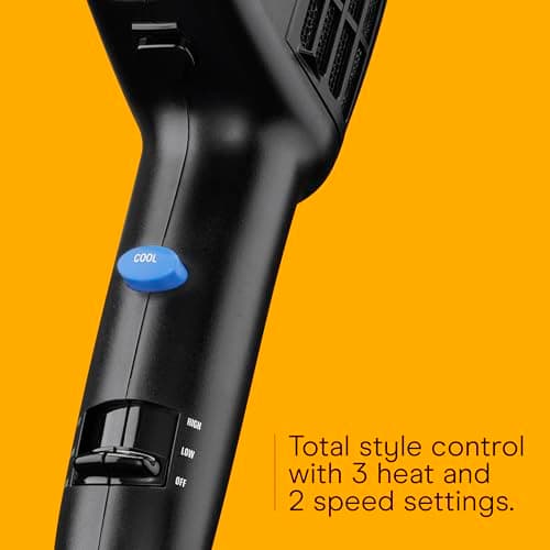 RED by KISS 2000 Ceramic Hair Dryer, Professional Salon Blow Dryer 3 Attachments Included, 2 Detangler Piks, 1 Air Concentrator (Yellow)