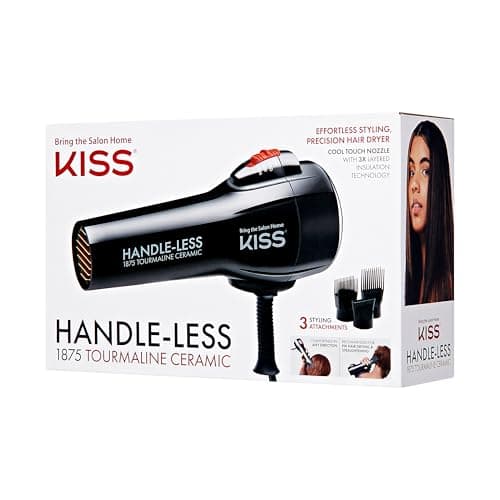 RED by Kiss Handle-Less 2200W Ceramic Tourmaline Hair Dryer, 3 Heat Settings, Pro Blow Dryer with Comb Attachment, Ionic for Frizz-Free Shine, Detangler & Straightening for 4C