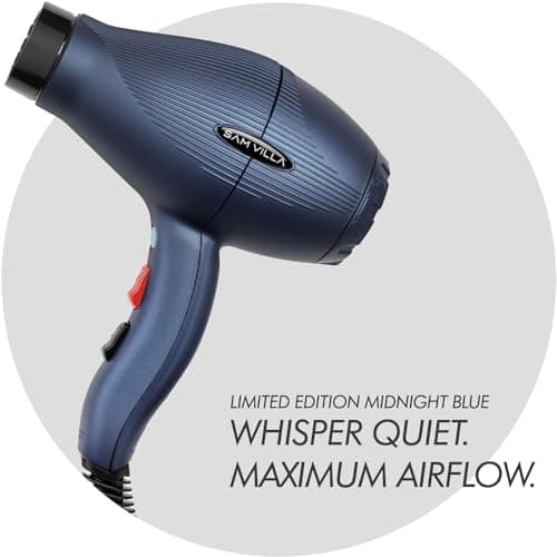 Sam Villa Lightweight & Quiet Ionic Professional Hair Dryer with Variable Speed & Temperature, Midnight Blue