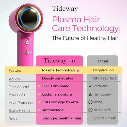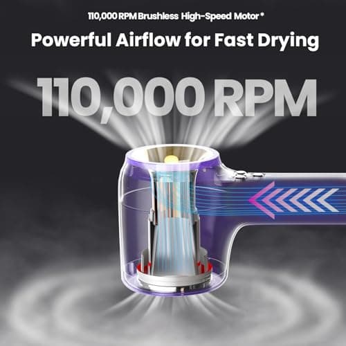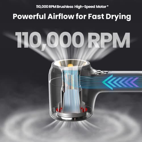 Tideway Hair Dryer Professional High-Speed Ionic Blow Dryer 110,000 RPM, Compact Hair Dryer with Magnetic Diffuser, Fast Drying with Brushless Motor Low Noise Smart Temperature Control-H11