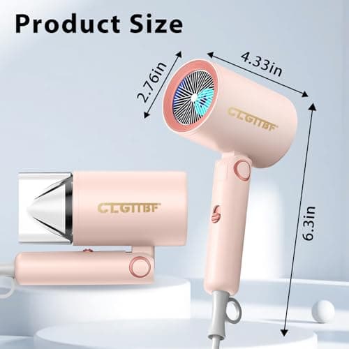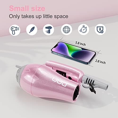CLGTTBF Portable Hair Blow Dryer with Nozzle, Double Blue Light Hair Dryers for Women, 1000W Mini Travel Blow Dryer,Pink