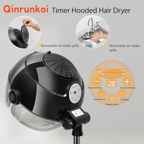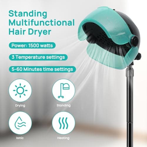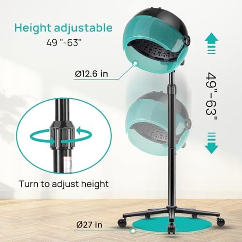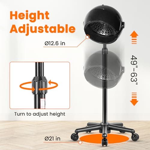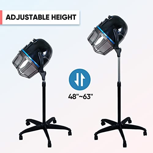 Hooded Hair Dryer, Adjustable Stand Hair Dryer on Wheels,Professional Ionic Bonnet Dryer with 3 Temperature Settings, for Salon, Spa or at Home Use