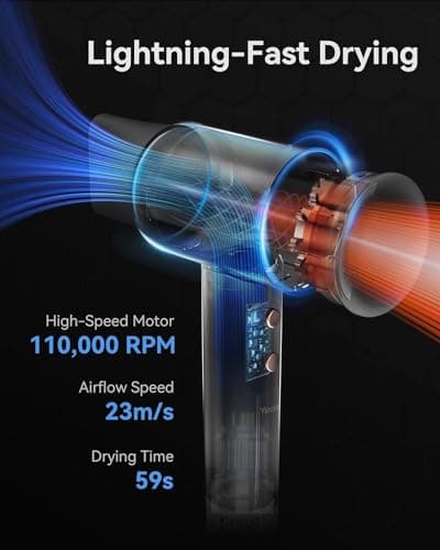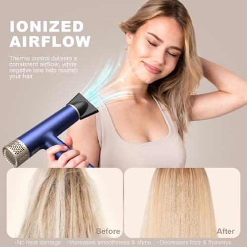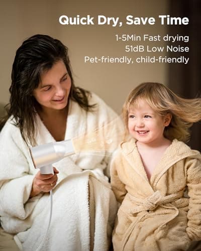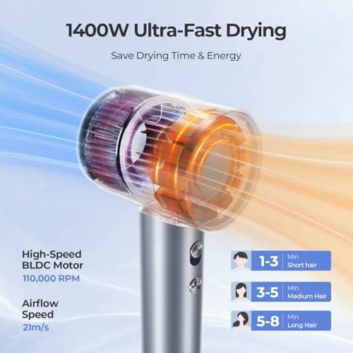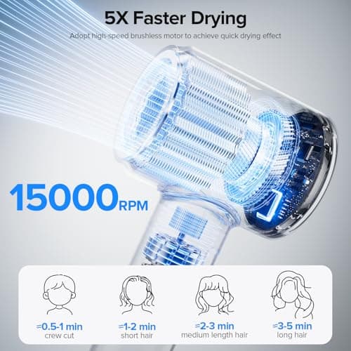 Cosy Companions High-Speed Ionic Hair Dryer, 150000 RPM Brushless Motor for 2-5 Min Fast Drying, Low Noise Blow Dryer Reduces Frizz & Heat Damage, Lightweight Hair Dryer with Diffuser & Nozzle