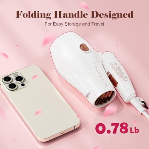 Travel Hair Dryer – Lightweight, Portable Dual Voltage Mini Blow Dryer for Women and Men with Foldable Handle, and Nozzle for Targeted Styling - Works on Short and Long Hair