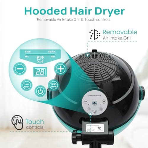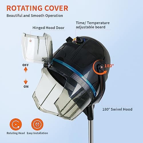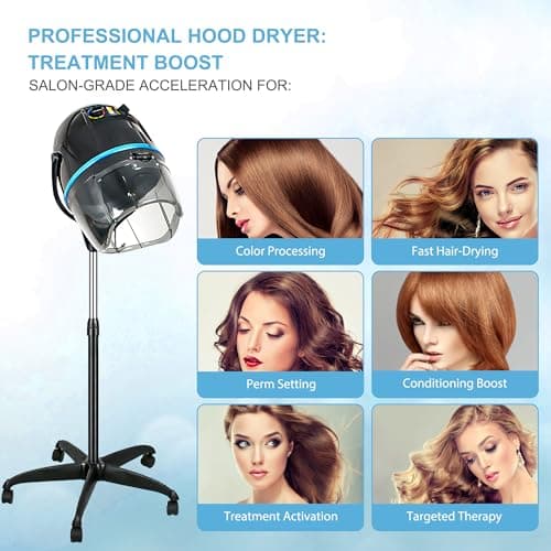 3-in-1 Orbital Hair Dryer and Processor - Rolling Base,Hair Color Processor,Hair Dryer Accelerator with Rolling Base, 6 Mode Salon Hair Conditioner/Perm for Salon Home Hair Care