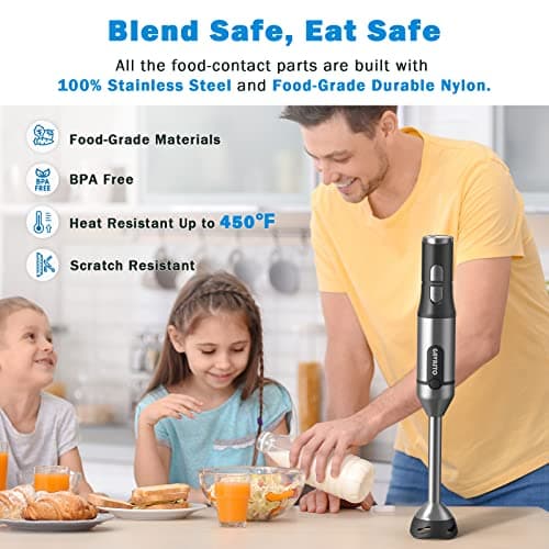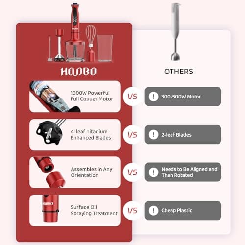 HOVOBO Immersion Blender Handheld 1000W Powerful Scratch Resistant Hand Blenders for Kitchen, Stick Blender Immersion 12 Speed and Turbo Mode, Low-Noise, Beaker Chopper Whisk Milk Frother