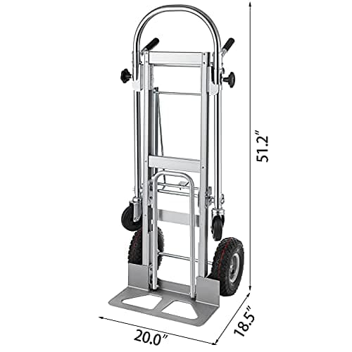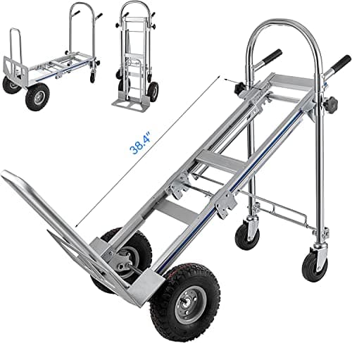 COSCO 3-in-1 Assist Series Aluminum Hand Truck/Cart with Flat Free Wheels, 800 lb/1000 lb Capacity, Silver