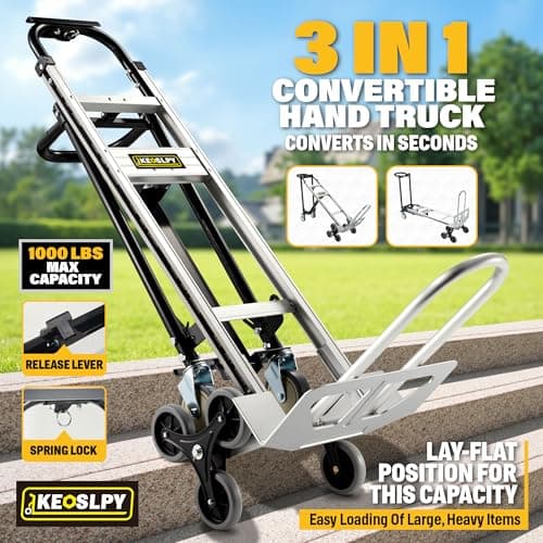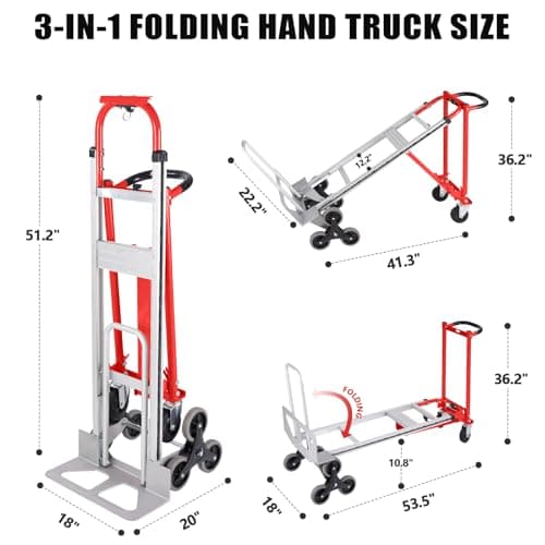3 in 1 Industrial Convertible Stair Climbing Cart,1000 LBS Capacity Hand Trucks Heavy Duty, Hand Truck Dolly for Transport & Moving in Warehouse, Home, Supermarket