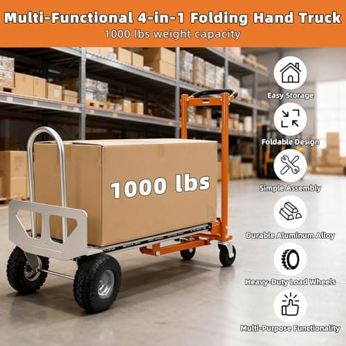 Hand Trucks Heavy Duty Aluminum Dolly Cart, 3 in 1 Design 1000 Lbs Capacity with Solid Wheels - Foldable, Portable, Ergonomic Handle, Perfect for Construction, Warehouses, Factories, Indoor & Outdoor