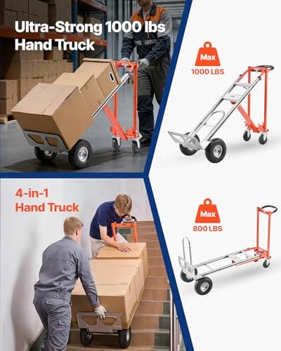 VEVOR 4 in 1 Hand Truck, 1000 lbs Load Capacity for 4-Wheel Mode, Convertible Hand Truck Dolly with Non-Slip Handle & Wheels, Aluminum Alloy Portable Trolley Dolly for Moving Home, Office, Warehouse