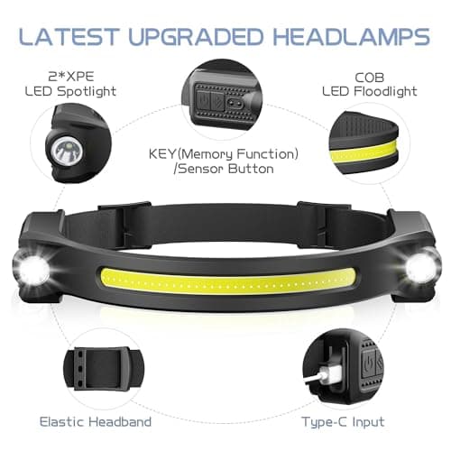Lepro LED Headlamp Rechargeable - Super Bright Head Lamp with 5 Modes for Camping & Hiking Gear Essentials, IPX4 Waterproof Headlight Flashlight with Red Light, USB Cable Included