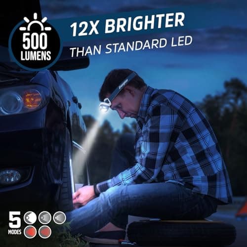 Vekkia Ultra Bright LED Headlamp-5 Lighting Modes,White & Red LEDs Head Lamp, Camping Accessories Gear. IPX6 Waterproof Headlight for Running,Cycling,Fishing,Hiking,Repairing. Batteries Included