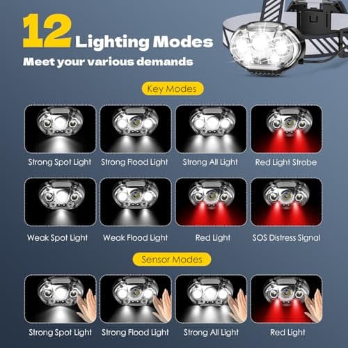 LHKNL Headlamp Flashlight, Lumen Ultra-Light Bright LED Rechargeable Headlight with White Red Light, 2-Pack Waterproof Motion Sensor Head Lamp,8 Modes for Outdoor Camping Running Hiking Fishing