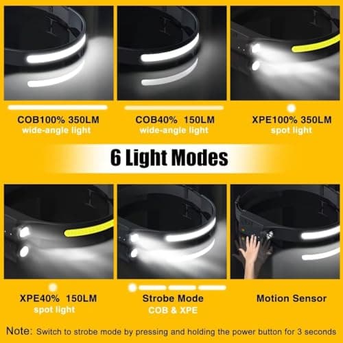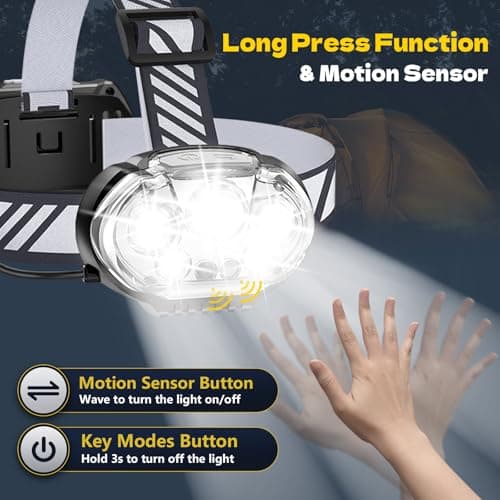Headlamp Rechargeable 2PCS, 230° Wide Beam Head Lamp LED with Motion Sensor for Adults - Camping Accessories Gear, Waterproof Head Light Flashlight for Hiking, Running, Repairing, Fishing, Cycling